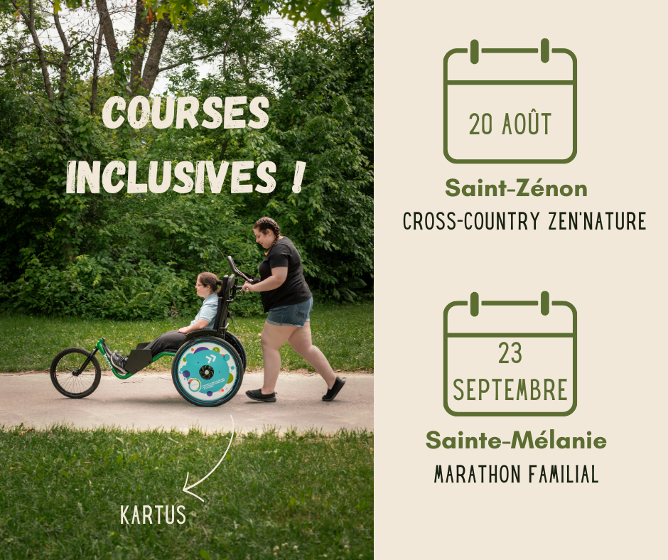 2 municipalités sont à la recherche de personnes qui souhaitent participer à leurs courses familiales inclusives. Un fauteuil roulant (Kartus) spécialement conçu pour la course est disponible gratuitement.