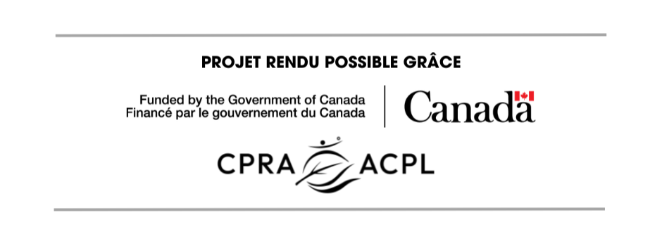 Ce projet est possible en partie grâce au gouvernement du Canada et à l’Association canadienne des parcs et loisirs.